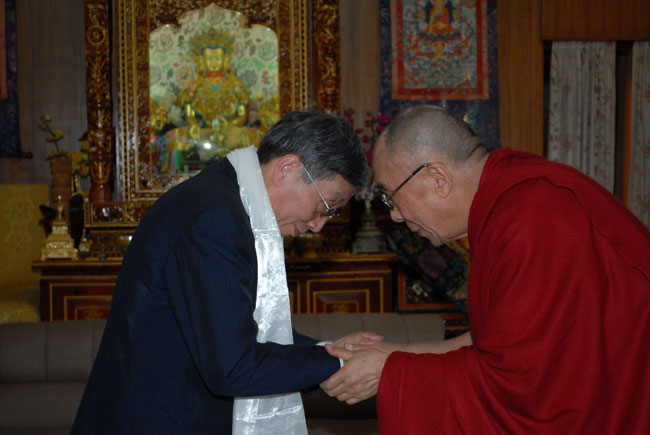 在林中斌夫妇和苏嘉宏教授与达赖喇嘛会见之后,轮到了我和晓康。我们和达赖喇嘛交谈了大约40分钟。现场由我们的老朋友才嘉做翻译。达赖喇嘛身体和精神都很好。那天下午,他已经会见了好几批来客,但仍然兴致盎然,毫无倦意。首先,我们感谢他向诺委会推荐刘晓波作为2010年和平奖得主,然后我们就中国政局及其他一些问题交换了看法。