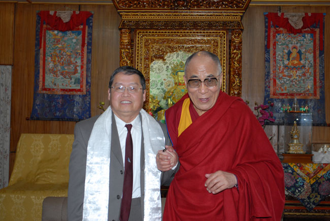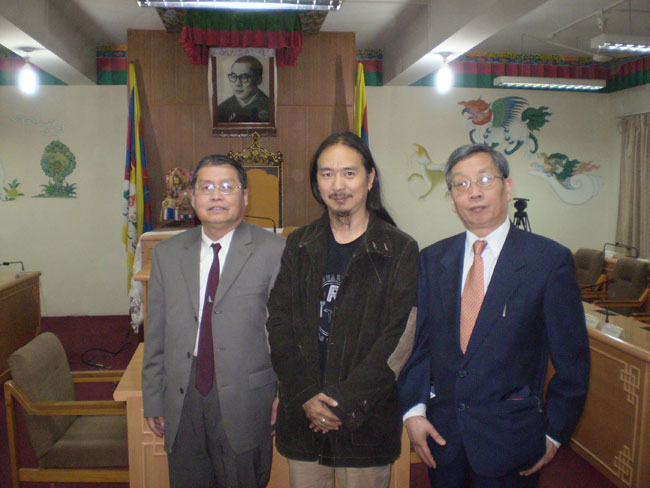 我和苏晓康是在达赖喇嘛官邸拜会达赖喇嘛的。在候客室,我们巧遇来自台湾的林中斌夫妇和苏嘉宏教授。林中斌原住美国,我和苏晓康在92年洛杉矶的一次会议上和他相识;后来他在华盛顿的美国企业研究所工作,其后回到台湾,担任过国防部副部长,现在淡江大学任教。苏嘉宏是高雄辅英科技大学的教授,对两岸关系问题和西藏问题都很有研究,著有《流亡中的民主:印度流亡藏人的政治与社会(1959-2004)》,曾多次来纽约参加我们《北京之春》组织的研讨会。