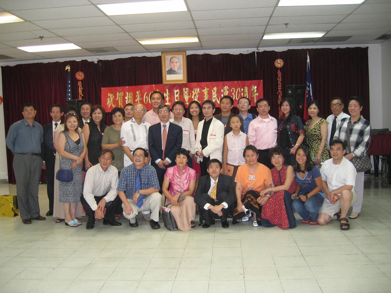 (Back, 点击此连接或图片回到前页) 照片上的人名 前排左起:唐元寯,苏炜,王艾(妻子),胡畔(儿子),魏玲,北明,郑美妮(郑义、北明女儿),李进进。 中排左起:张菁,吕京花,王蔷(王艾大姐),郑义,胡平,陈破空,陈奎德,胡念(女儿),刘刚,刘刚女友,傅红,宋书元,陈立群。 后排左起:一平,齐光,任之恭(王艾大姐夫),李晓,田晓春,陈梦潇(陈奎德、傅红女儿),王丹,余杰